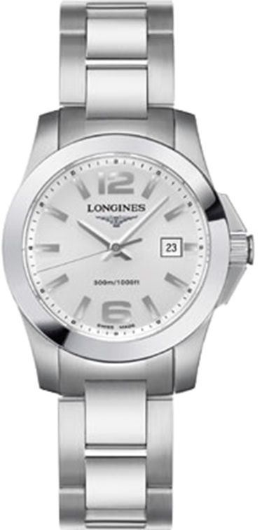 Model: L3.277.4.76.6 - CASE = [Material:Brushed and Polished Stainless Steel], [Case Diameter:29], [Case Thickness:9mm], [Bezel:Fixed], [Case Back:Solid], [Water Resistant:300 Meters - 1000 Feet], [Crystal:Scratch Resistant Sapphire], DIAL = [Color:Silver], MOVEMENT = [Type:Battery Powered Quartz], [Crown:Screw Down], BAND = [Clasp:Double Folding, Double Push Button], [Type:Brushed and Polished Stainless Steel], (Usually ships in 1 to 2 weeks.)