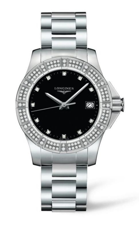 Model: L3.280.0.57.6 - CASE = [Material:Stainless Steel], [Case Diameter:35], [Bezel:Set with Diamonds], [Water Resistant:50 Meters - 165 Feet], [Crystal:Scratch Resistant Sapphire], DIAL = [Color:Black with Diamond Hour Markers], MOVEMENT = [Type:Quartz], [Crown:Screw Down], BAND = [Clasp:Folding], [Type:Stainless Steel], (Usually ships in 1 to 2 weeks.)