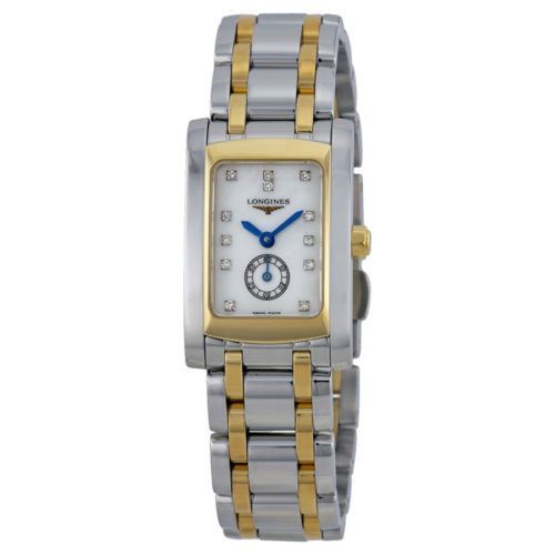 Longines DolceVita Mother of Pearl Diamond Dial Ladies Watch L5.155.5.08.7WATCHBrand:LonginesSeries:DolceVitaModel No:L5.155.5.08.7Gender:Ladies Movement:Quartz CASEMaterial:Stainless Steel Diameter: 19.8 mm x 24.5 mm Bezel:Fixed 18kt Yellow Gold and Stainless SteelDIALColor:White Mother of Pearl BRACELETBand Material:18kt Yellow Gold and Stainless Steel Clasp:DeploymentFEATURESWater Resistance:30 meters / 100 feet ADDITIONAL INFO functions: Hour, Minute, Small Second