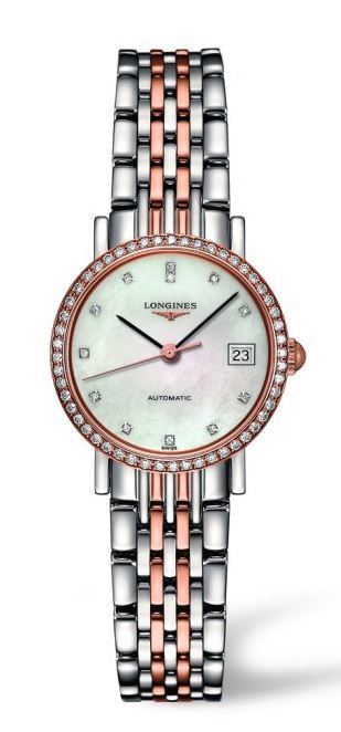 Model: L4.309.5.88.7 - CASE = [Material:Steel & 18K Rose Gold], [Case Diameter:25], [Bezel:18K Rose Gold & Diamonds], [Case Back:Skeleton], [Water Resistant:30 Meters - 100 Feet], [Crystal:Scratch Resistant Sapphire], DIAL = [Color:Mother Of Pearl], MOVEMENT = [Type:Automatic], [Crown:Push In], BAND = [Clasp:Deployant Buckle], [Type:Steel & Rose Gold Tone], (Usually ships in 1 to 2 weeks.)
