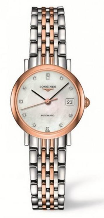 Model: L4.309.5.87.7 - CASE = [Material:Steel & 18K Rose Gold], [Case Diameter:25], [Bezel:Steel & 18K Rose Gold], [Case Back:Skeleton], [Water Resistant:30 Meters - 100 Feet], [Crystal:Scratch Resistant Sapphire], DIAL = [Color:Mother Of Pearl], MOVEMENT = [Type:Automatic], [Crown:Push In], BAND = [Clasp:Deployant Buckle], [Type:Steel & Rose Gold Tone], (Usually ships in 1 to 2 weeks.)