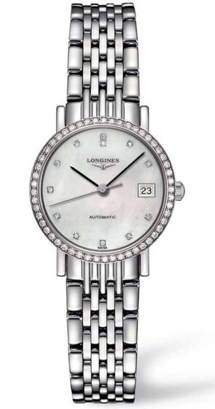 Model: L4.309.0.87.6 - CASE = [Material:Stainless Steel], [Case Diameter:25], [Bezel:Stainless Steel & Diamonds], [Case Back:Skeleton], [Water Resistant:30 Meters - 100 Feet], [Crystal:Scratch Resistant Sapphire], DIAL = [Color:Mother Of Pearl], MOVEMENT = [Type:Automatic], [Crown:Push In], BAND = [Clasp:Deployant Buckle], [Type:Stainless Steel], (Usually ships in 1 to 2 weeks.)