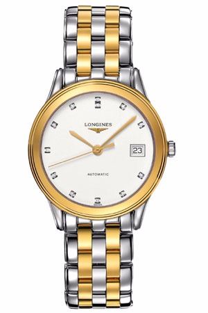 Model: L4.774.3.27.7 - CASE = [Material:Polished 18K Yellow Gold Tone and Stainless Steel], [Case Diameter:35.6], [Bezel:Fixed], [Case Back:Solid], [Water Resistant:30 Meters / 100 Feet], [Crystal:Scratch Resistant Sapphire],; DIAL = [Color:White with 12 Diamonds (0.48ct)],; MOVEMENT = [Type:Automatic Self Winding],; BAND = [Clasp:Hidden Folding Push Button], [Type:Polished Yellow Gold and Stainless Steel], (Usually ships in 1 to 2 weeks.)