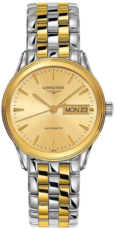 Model: L4.799.3.32.7 - CASE = [Material:Stainless Steel and Plated Yellow Gold], [Case Diameter:35.6], [Case Thickness:9.8mm], [Bezel:Fixed], [Case Back:Skeleton], [Water Resistant:30 Meters - 100 Feet], [Crystal:Scratch Resistant Sapphire], DIAL = [Color:Champagne], MOVEMENT = [Type:Automatic], [Crown:Push In], BAND = [Clasp:Folding], [Type:Stainless Steel and Plated Yellow Gold], (Usually ships in 1 to 2 weeks.)