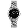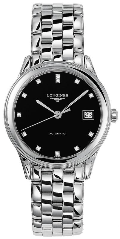Model: L4.774.4.57.6 - CASE = [Material:Polished Stainless Steel], [Case Diameter:35.6], [Bezel:Fixed], [Case Back:Solid], [Water Resistant:30 Meters / 100 Feet], [Crystal:Scratch Resistant Sapphire], DIAL = [Color:Black with Diamonds and Date at 3], MOVEMENT = [Type:Automatic Self Winding], BAND = [Clasp:Hidden Folding Push Button], [Type:Polished Stainless Steel], (Usually ships in 1 to 2 business days.)