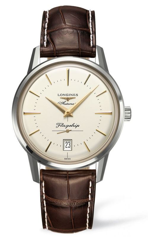 Model: L4.795.4.78.2 - CASE = [Material:Polished Stainless Steel], [Case Diameter:38.5], [Case Thickness:10.75mm], [Bezel:Fixed], [Case Back:Solid], [Water Resistant:30 Meters / 100 Feet], [Crystal:Scratch Resistant Sapphire], DIAL = [Color:Silver], MOVEMENT = [Type:Automatic Self Winding], BAND = [Clasp:Tang Buckle], [Type:Brown Alligator Leather], (In Stock - Ready to ship.)