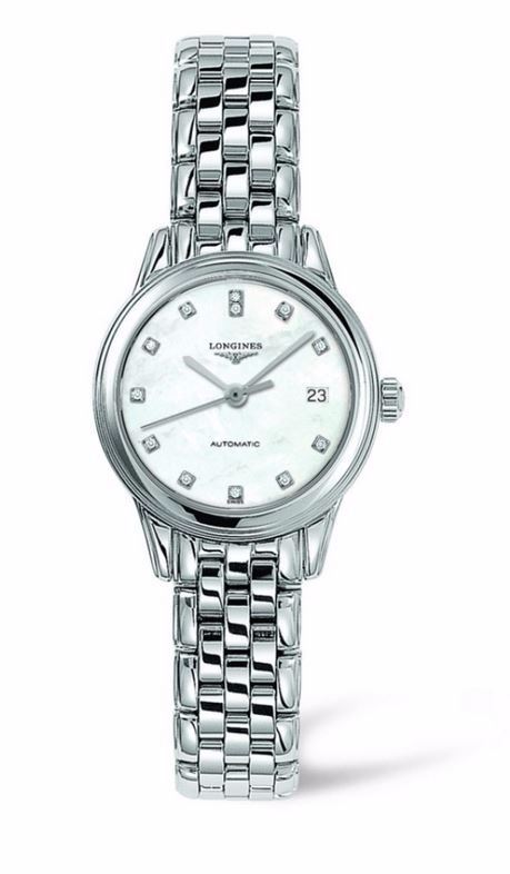Model: L4.274.4.87.6 - CASE = [Material:Stainless Steel], [Case Diameter:26], [Bezel:Fixed], [Case Back:Skeleton], [Water Resistant:30 Meters - 100 Feet], [Crystal:Scratch Resistant Sapphire],; DIAL = [Color:Mother of Pearl with Silver Toned Hands and 12 Diamond Hour Markers],; MOVEMENT = [Type:Automatic],; BAND = [Clasp:Deployment], [Type:Stainless Steel], (Usually ships in 1 to 2 weeks.)
