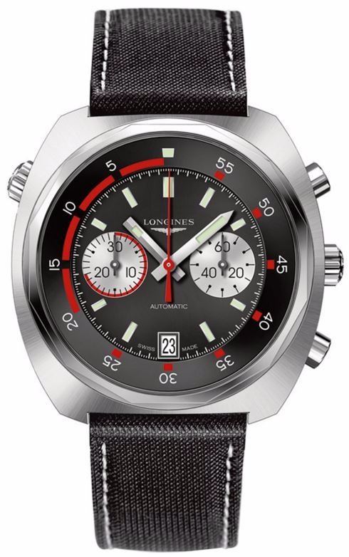 Model: L2.796.4.52.0 - CASE = [Material:Stainless Steel], [Case Diameter:43], [Bezel:Fixed], [Case Back:Solid], [Water Resistant:30 Meters - 100 Feet], [Crystal:Scratch Resistant Sapphire],; DIAL = [Color:Black with Silver Subdials and Luminious Hour Markers],; MOVEMENT = [Type:Automatic Chronograph], [Crown:Push In],; BAND = [Clasp:Deployment], [Type:Black Fabric], (Usually ships in 1 to 2 weeks.)