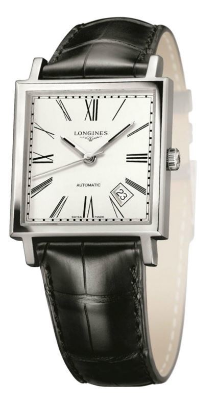 Model: L2.792.4.71.0 - Case,; MATERIALSTAINLESS STEEL = [Case Diameter33], [Case Thickness9mm], [BezelFixed], [Case BackSolid], [Water Resistant30 Meters - 100 Feet], [CrystalHesalite], Dial,; COLORSILVER WITH ROMAN NUMERAL HOUR MARKERS AND DATE DISPLAY BETWEEN 4 & 5 O'CLOCK POSITION = Movement,; TYPEAUTOMATIC = [CrownPush In], Band,; CLASPTANG = [TypeBlack Alligator Leather], (Usually ships in 1 to 2 weeks.)