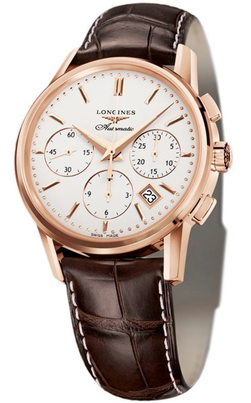 Model: L2.733.8.72.2 - CASE = [Material:18kt Rose Gold], [Case Diameter:39], [Case Thickness:14mm], [Bezel:Fixed], [Case Back:Skeleton], [Water Resistant:30 Meters - 100 Feet], [Crystal:Scratch Resistant Sapphire], DIAL = [Color:Ivory with Rose Gold Toned Index Hour Markers], MOVEMENT = [Type:Automatic Chronograph], [Crown:Push In], BAND = [Clasp:Tang], [Type:Brown Alligator Leather], (Usually ships in 1 to 2 weeks.)