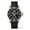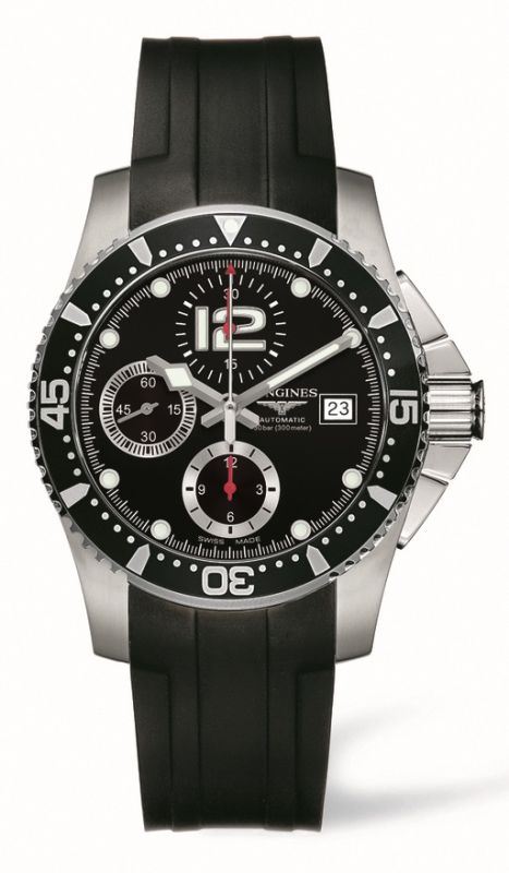 Model: L3.644.4.56.2 - CASE = [Material:Brushed and Polished Stainless Steel], [Case Diameter:41], [Case Thickness:15.5mm], [Bezel:Uni-Directional Rotating], [Case Back:Solid], [Water Resistant:300 Meters / 1000 Feet], [Crystal:Scratch Resistant Sapphire], DIAL = [Color:Black Chronograph with Date at 4], MOVEMENT = [Type:Automatic Self Winding], [Crown:Screw Down], BAND = [Clasp:Deployment], [Type:Black Rubber], (Usually ships in 2 to 4 weeks.)