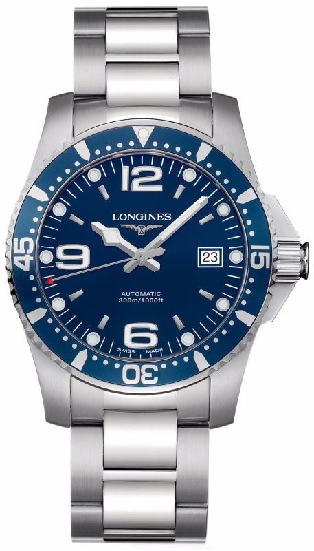 Model: L3.642.4.96.6 - CASE = [Material:Brushed and Polished Stainless Steel], [Case Diameter:41], [Case Thickness:12mm], [Bezel:Uni-Directional Rotating], [Case Back:Solid], [Water Resistant:300 Meters / 1000 Feet], [Crystal:Scratch Resistant Sapphire],; DIAL = [Color:Blue with Date at 3],; MOVEMENT = [Type:Automatic Self Winding], [Crown:Screw Down],; BAND = [Clasp:Hidden Folding Push Button], [Type:Brushed and Polished Stainless Steel], (Usually ships in 1 to 2 weeks.)
