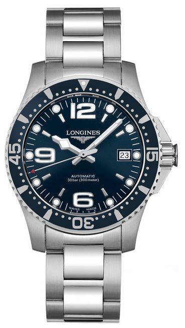 Model: L3.641.4.96.6 - CASE = [Material:Brushed and Polished Stainless Steel], [Case Diameter:39], [Case Thickness:11.8mm], [Bezel:Uni-Directional Rotating], [Case Back:Solid], [Water Resistant:300 Meters / 1000 Feet], [Crystal:Scratch Resistant Sapphire], DIAL = [Color:Blue with Date at 3], MOVEMENT = [Type:Automatic Self Winding], [Crown:Screw Down], BAND = [Clasp:Hidden Folding Push Button], [Type:Brushed and Polished Stainless Steel], (In Stock - Ready to ship.)
