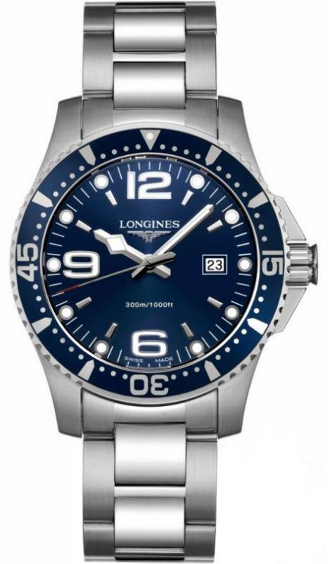 Model: L3.640.4.96.6 - CASE = [Material:Brushed and Polished Stainless Steel], [Case Diameter:39], [Case Thickness:10.2mm], [Bezel:Uni-Directional Rotating], [Case Back:Solid], [Water Resistant:300 Meters / 1000 Feet], [Crystal:Scratch Resistant Sapphire],; DIAL = [Color:Blue with Date at 3],; MOVEMENT = [Type:Battery Powered Quartz], [Crown:Screw Down],; BAND = [Clasp:Hidden Folding Push Button], [Type:Brushed and Polished Stainless Steel], (Usually ships in 1 to 2 weeks.)