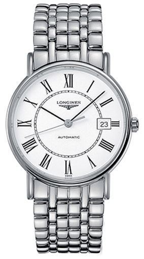 Model: L4.921.4.11.6 - CASE = [Material:Polished Stainless Steel], [Case Diameter:39], [Case Thickness:7.6mm], [Bezel:Fixed], [Case Back:Solid], [Water Resistant:30 Meters / 100 Feet], [Crystal:Scratch Resistant Sapphire],; DIAL = [Color:White with Roman Numeral Hour Markers and Date at 3],; MOVEMENT = [Type:Automatic Self Winding],; BAND = [Clasp:Hidden Folding Push Button], [Type:Polished Stainless Steel], (Usually ships in 4 to 8 weeks.)