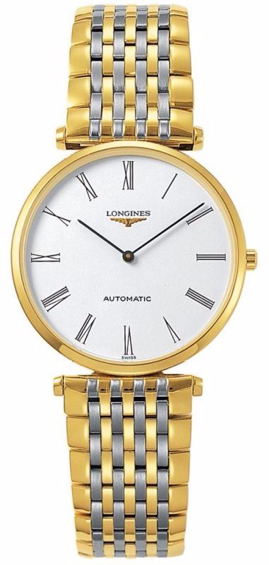 Model: L4.708.2.11.7 - CASE = [Material:18k Yellow Gold Tone], [Case Diameter:34], [Bezel:Fixed], [Case Back:Solid], [Water Resistant:30 Meters / 100 Feet], [Crystal:Scratch Resistant Sapphire],; DIAL = [Color:White with Black Roman Numeral],; MOVEMENT = [Type:Automatic Self Winding],; BAND = [Clasp:Hidden Folding Push Button], [Type:18k Yellow Gold Tone with Stainless Steel], (Usually ships in 1 to 2 weeks.)