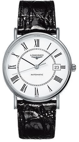 Model: L4.921.4.11.2 - CASE = [Material:Polished Stainless Steel], [Case Diameter:39], [Case Thickness:7.6mm], [Bezel:Fixed], [Case Back:Solid], [Water Resistant:30 Meters / 100 Feet], [Crystal:Scratch Resistant Sapphire], DIAL = [Color:White with Roman Numeral Hour Markers and Date at 3], MOVEMENT = [Type:Automatic Self Winding], BAND = [Clasp:Tang Buckle], [Type:Black Crocodile Leather], (Usually ships in 2 to 4 weeks.)
