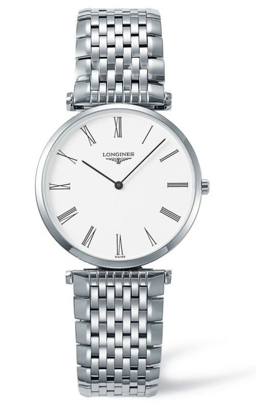 Model: L4.709.4.11.6 - CASE = [Material:Stainless Steel], [Case Diameter:33], [Case Thickness:5mm], [Bezel:Fixed], [Case Back:Solid], [Water Resistant:30 Meters / 100 Feet], [Crystal:Scratch Resistant Sapphire],; DIAL = [Color:White Roman Numeral],; MOVEMENT = [Type:Battery Powered Quartz],; BAND = [Clasp:Hidden Folding Push Button], [Type:Stainless Steel], (Usually ships in 1 to 2 weeks.)