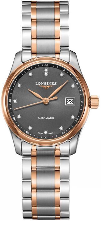 Model: L2.257.5.07.7 - Case,; MATERIALSTAINLESS STEEL AND ROSE GOLD = [Case Diameter29], [Case Thickness9mm], [BezelFixed], [Case BackSkeleton], [Water Resistant30 Meters - 100 Feet], [CrystalScratch Resistant Sapphire], Dial,; COLORGREY = Movement,; TYPEAUTOMATIC = [CrownPush In], Band,; CLASPFOLDING = [TypeStainless Steel and Rose Gold], (Usually ships in 1 to 2 weeks.)