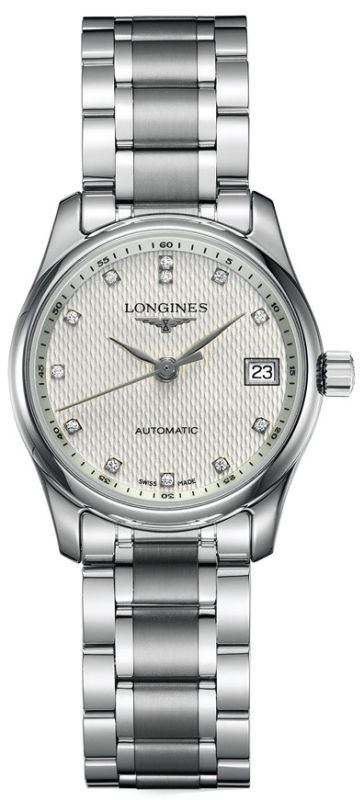 Model: L2.257.4.77.6 - Case,; MATERIALPOLISHED STAINLESS STEEL = [Case Diameter29], [BezelFixed], [Case BackSee-thru Sapphire], [Water Resistant30 Meters - 100 Feet], [CrystalScratch Resistant Sapphire], Dial,; COLORSILVER TEXTURED WITH DIAMOND HOUR MARKERS = Movement,; TYPEAUTOMATIC SELF WINDING = [CrownWinding], Band,; CLASPDOUBLE PUSH BUTTON DEPLOYMENT BUCKLE = [TypeBrushed and Polished Stainless Steel], (Usually ships in 1 to 2 weeks.)