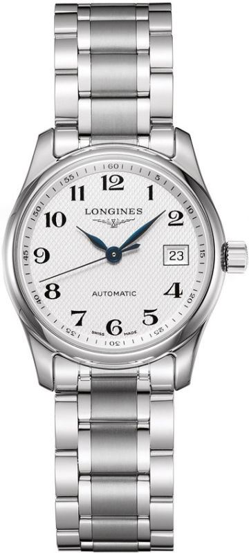 Model: L2.257.4.78.6 - CASE = [Material:Polished Stainless Steel], [Case Diameter:29], [Case Thickness:9mm], [Bezel:Fixed], [Case Back:See-thru Sapphire], [Water Resistant:30 Meters - 100 Feet], [Crystal:Scratch Resistant Sapphire], DIAL = [Color:Silver Textured with Date at 3], MOVEMENT = [Type:Automatic Self Winding], [Crown:Winding], BAND = [Clasp:Double Push Button Deployment Buckle], [Type:Brushed and Polished Stainless Steel], (Usually ships in 1 to 2 weeks.)