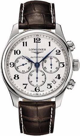 Model: L2.693.4.78.3 - CASE = [Material:Brushed and Polished Stainless Steel], [Case Diameter:44], [Bezel:Fixed], [Case Back:See-thru Sapphire crystal], [Water Resistant:30 Meters / 100 Feet], [Crystal:Scratch Resistant Sapphire],; DIAL = [Color:Silver Textured Roman Numeral Chronograph with Date Between 4 and 5],; MOVEMENT = [Type:Automatic Self Winding],; BAND = [Clasp:Hidden Folding Push Button], [Type:Brown Crocodile Leather], (Usually ships in 1 to 2 weeks.)