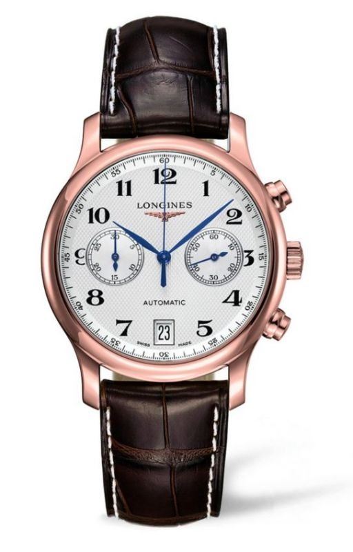 Model: L2.669.8.78.3 - CASE = [Material:18kt Rose Gold], [Case Diameter:38.5], [Case Thickness:12mm], [Bezel:Fixed], [Case Back:Skeleton], [Water Resistant:30 Meters - 100 Feet], [Crystal:Scratch Resistant Sapphire],; DIAL = [Color:Silver with Blue Hands and Black Numerals],; MOVEMENT = [Type:Automatic], [Crown:Push In],; BAND = [Clasp:Deployment], [Type:Brown Alligator - Crocodile Leather], (Usually ships in 1 to 2 weeks.)