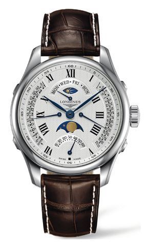Model: L2.738.4.71.3 - CASE = [Material:Stainless Steel], [Case Diameter:41], [Water Resistant:30 Meters - 100 Feet], [Crystal:Scratch Resistant Sapphire], DIAL = [Color:White with Day & Date Calendar and Moonphase Features], MOVEMENT = [Type:Automatic], BAND = [Clasp:Deployment], [Type:Brown Alligator - Crocodile Leather], (Usually ships in 1 to 2 weeks.)