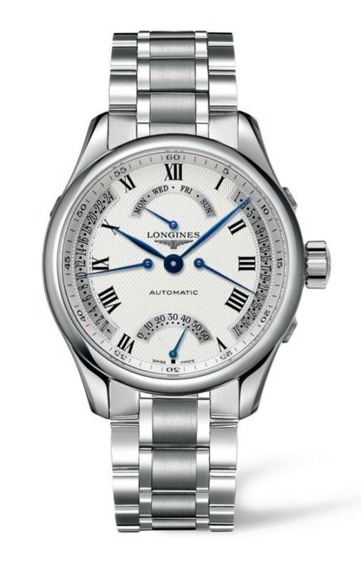 Model: L2.715.4.71.6 - CASE = [Material:Stainless Steel], [Case Diameter:41], [Water Resistant:30 Meters - 100 Feet], [Crystal:Scratch Resistant Sapphire], DIAL = [Color:White with Blue Hands and Roman Numerals], MOVEMENT = [Type:Automatic], BAND = [Clasp:Deployment], [Type:Stainless Steel], (In Stock - Ready to ship.)