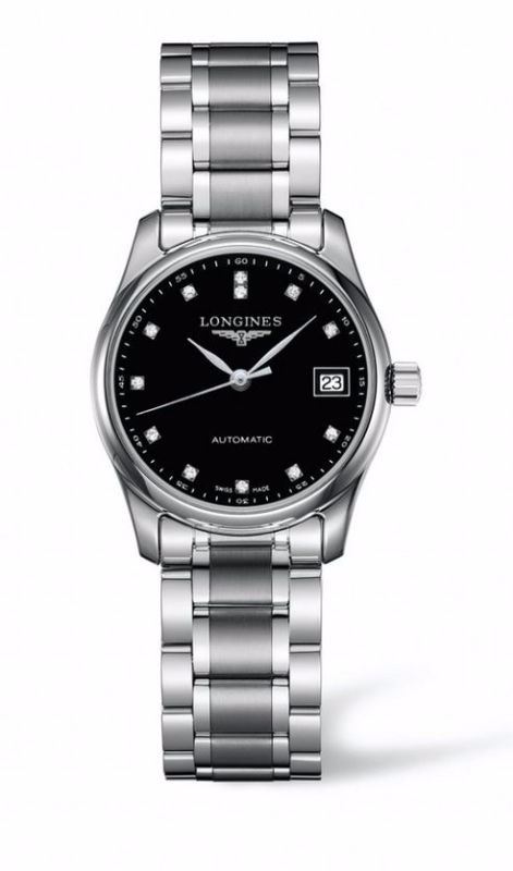 Model: L2.257.4.57.6 - CASE = [Material:Stainless Steel], [Case Diameter:25.5], [Bezel:Fixed], [Water Resistant:30 Meters - 100 Feet], [Crystal:Scratch Resistant Sapphire],; DIAL = [Color:Black with Silver Toned Hands and Diamond Hour Markers],; MOVEMENT = [Type:Automatic],; BAND = [Clasp:Deployment], [Type:Stainless Steel], (Usually ships in 1 to 2 weeks.)