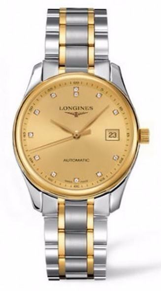 Model: L2.518.5.37.7 - CASE = [Material:Stainless Steel & Yellow Gold], [Case Diameter:36], [Bezel:Stainless Steel & Yellow Gold], [Case Back:Skeleton], [Water Resistant:30 Meters - 100 Feet], [Crystal:Scratch Resistant Sapphire],; DIAL = [Color:Champagne],; MOVEMENT = [Type:Automatic], [Crown:Push In],; BAND = [Clasp:Hidden Folding Clasp], [Type:Stainless Steel & Yellow Gold], (In Stock - Ready to ship.)