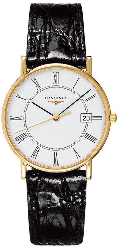 Model: L4.743.6.11.0 - CASE = [Material:18kt Yellow Gold], [Case Diameter:33.5], [Case Thickness:6mm], [Case Back:Solid], [Water Resistant:30 Meters - 100 Feet], [Crystal:Scratch Resistant Sapphire], DIAL = [Color:White with Roman Numerals], MOVEMENT = [Type:Quartz], [Crown:Push In], BAND = [Clasp:Tang], [Type:Black Alligator - Crocodile Leather], (Usually ships in 1 to 2 weeks.)