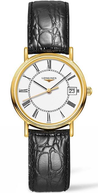 Model: L4.320.2.11.2 - CASE = [Material:Rose Gold Plated Stainless Steel], [Case Diameter:30], [Bezel:Fixed], [Case Back:Solid], [Water Resistant:30 Meters - 100 Feet], [Crystal:Scratch Resistant Sapphire], DIAL = [Color:White], MOVEMENT = [Type:Quartz], [Crown:Push In], BAND = [Clasp:Tang], [Type:Black Alligator Leather], (In Stock - Ready to ship.)