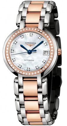 Model: L8.113.5.89.6 - CASE = [Material:18kt Rose Gold/Stainless Steel], [Case Diameter:30], [Bezel:Diamond], [Case Back:Solid], [Water Resistant:30 Meters/100 Feet], [Crystal:Scratch Resistant Sapphire],; DIAL = [Color:Diamond/Mother of Pearl],; MOVEMENT = [Type:Automatic Self Winding],; BAND = [Clasp:Deployment], [Type:18kt Rose Gold/Stainless Steel], (Usually ships in 1 to 2 weeks.)