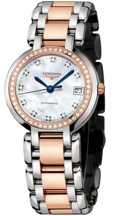 Model: L8.113.5.89.6 - CASE = [Material:18kt Rose Gold/Stainless Steel], [Case Diameter:30], [Bezel:Diamond], [Case Back:Solid], [Water Resistant:30 Meters/100 Feet], [Crystal:Scratch Resistant Sapphire], DIAL = [Color:Diamond/Mother of Pearl], MOVEMENT = [Type:Automatic Self Winding], BAND = [Clasp:Deployment], [Type:18kt Rose Gold/Stainless Steel], (Usually ships in 1 to 2 weeks.)