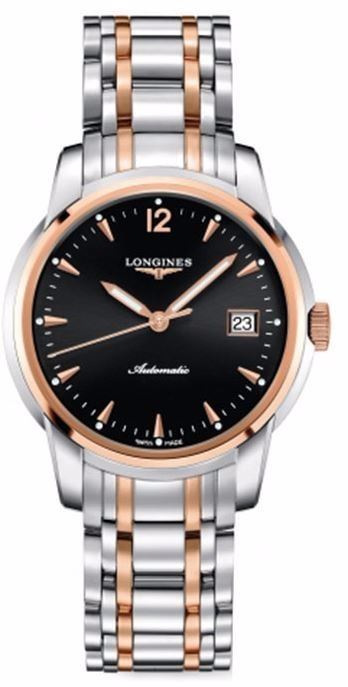 Model: L2.763.5.52.7 - CASE = [Material:Polished Stainless Steel and 18K Rose Gold], [Case Diameter:38.5], [Case Thickness:9.5mm], [Bezel:Fixed], [Case Back:See-Thru Sapphire], [Water Resistant:30 Meters - 100 Feet], [Crystal:Scratch Resistant Sapphire],; DIAL = [Color:Black with Date at 3],; MOVEMENT = [Type:Automatic Self Winding],; BAND = [Clasp:Deployment Buckle], [Type:Polished Stainless Steel and 18K Rose Gold], (Usually ships in 1 to 2 weeks.)