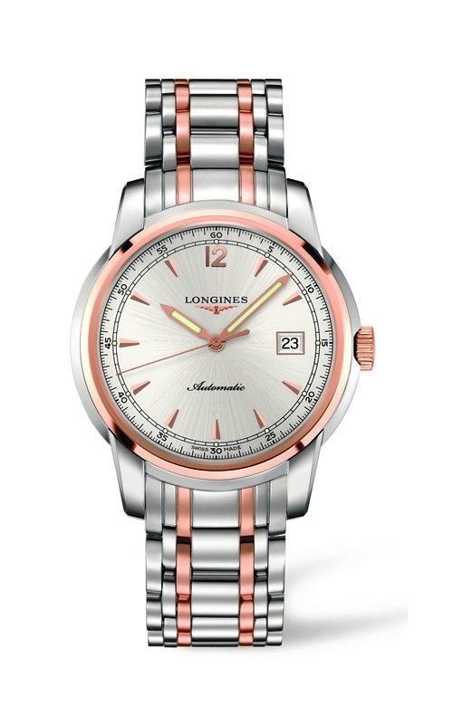 Model: L2.766.5.79.7 - CASE = [Material:Polished Stainless Steel and 18K Rose Gold], [Case Diameter:41], [Bezel:Fixed], [Case Back:See-Thru Sapphire], [Water Resistant:30 Meters - 100 Feet], [Crystal:Scratch Resistant Sapphire],; DIAL = [Color:Silver with Rose Gold Tone Hands and Markers, Date at 3],; MOVEMENT = [Type:Automatic Self Winding],; BAND = [Clasp:Deployment Buckle], [Type:Polished Stainless Steel and 18K Rose Gold], (Usually ships in 1 to 2 weeks.)