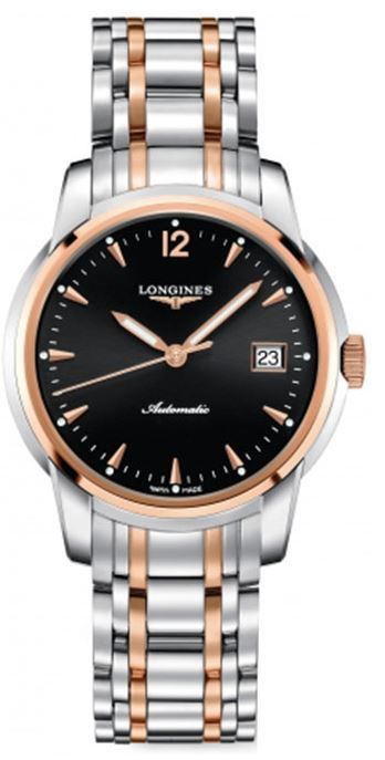 Model: L2.763.5.52.7 - CASE = [Material:Polished Stainless Steel and 18K Rose Gold], [Case Diameter:38.5], [Case Thickness:9.5mm], [Bezel:Fixed], [Case Back:See-Thru Sapphire], [Water Resistant:30 Meters - 100 Feet], [Crystal:Scratch Resistant Sapphire], DIAL = [Color:Black with Date at 3], MOVEMENT = [Type:Automatic Self Winding], BAND = [Clasp:Deployment Buckle], [Type:Polished Stainless Steel and 18K Rose Gold], (Usually ships in 1 to 2 weeks.)