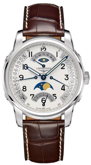 Model: L2.764.4.73.0 - CASE = [Material:Stainless Steel], [Case Diameter:44], [Bezel:Stainless Steel], [Case Back:Skeleton], [Water Resistant:30 Meters - 100 Feet], [Crystal:Scratch Resistant Sapphire], DIAL = [Color:Silver], MOVEMENT = [Type:Automatic Moon Phase], [Crown:Push in], BAND = [Clasp:Hidden Folding Clasp], [Type:Brown Alligator Leather], (Usually ships in 1 to 2 weeks.)