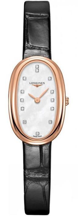 Model: L2.305.8.87.0 - CASE = [Material:18kt Rose Gold], [Case Diameter:18.9], [Case Thickness:5.85mm], [Bezel:Fixed], [Case Back:Solid], [Water Resistant:30 Meters - 100 Feet], [Crystal:Scratch Resistant Sapphire], DIAL = [Color:Mother of Pearl], MOVEMENT = [Type:Quartz], [Crown:Push In], BAND = [Clasp:Tang], [Type:Black Leather], (Usually ships in 1 to 2 weeks.)