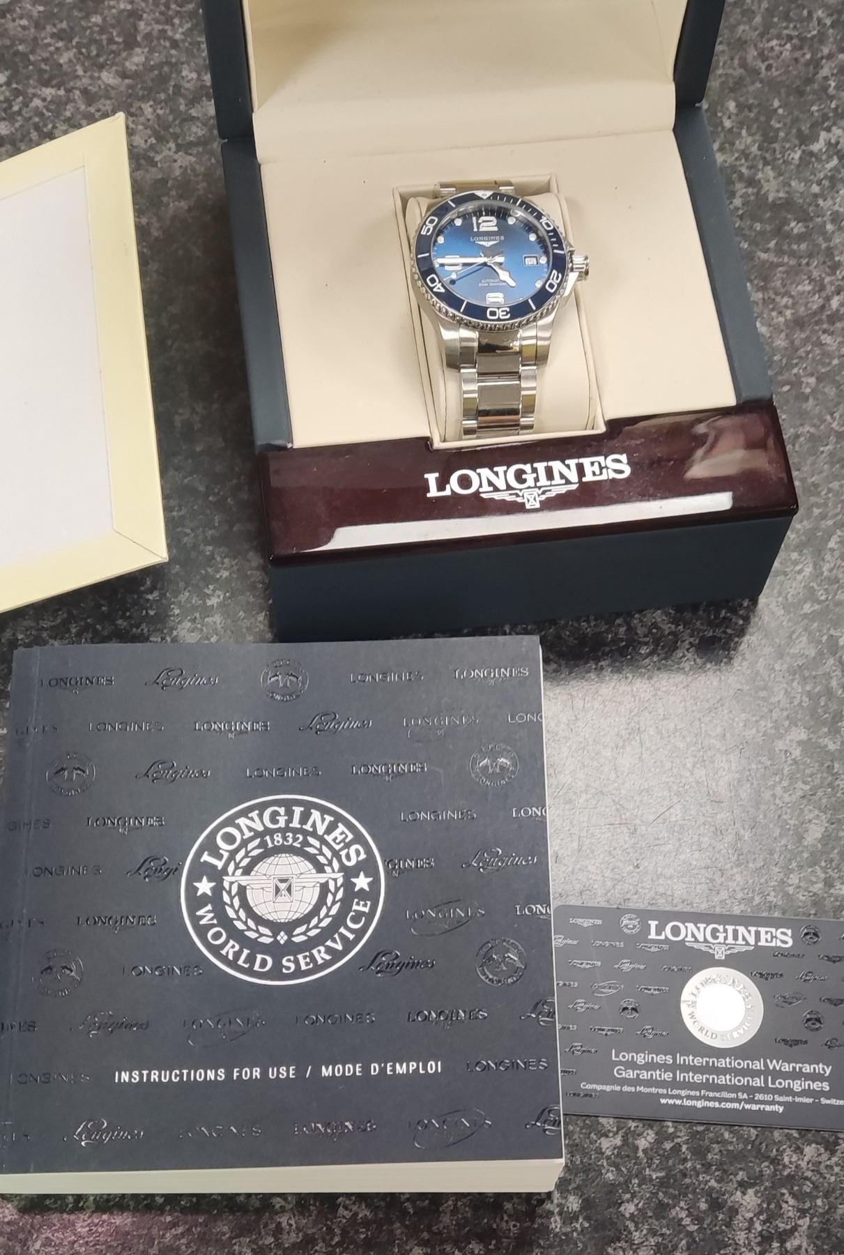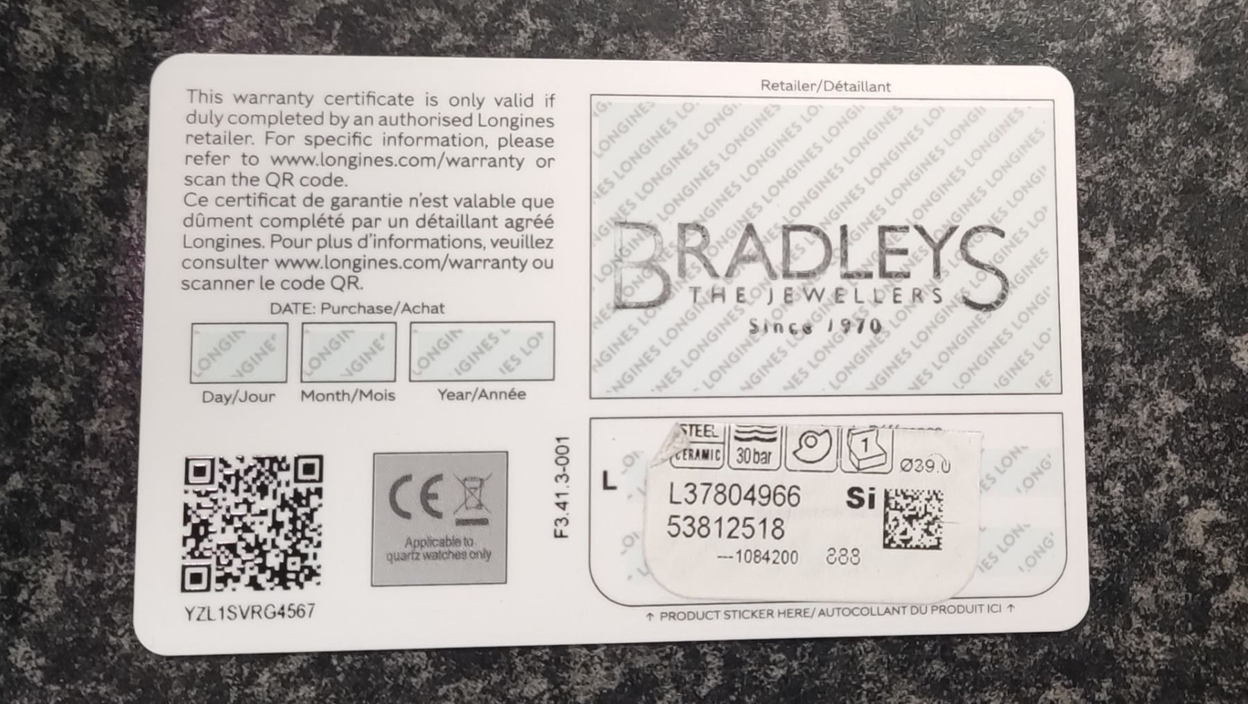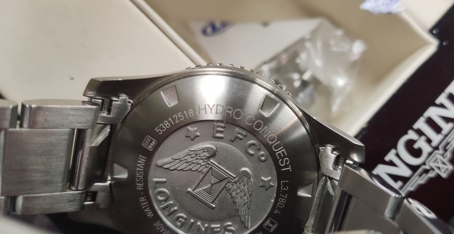 This Longines HydroConquest 41mm Mens Watch L3.781.3.56.7 features a 41mm case, beautifully crafted from stainless-steel with a ceramic, unidirectional rotating bezel. The matt black dial features a date window at the 3 o’clock complemented by yellow gold coloured hands. Powered by an automatic, self-winding mechanical movement, with a power reserve of approximately 72 hours. Presented on a stainless-steel and yellow gold bracelet strap with folding clasp.