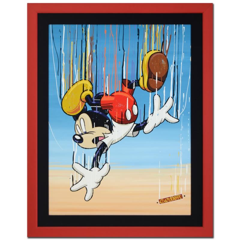"Look Out Below" is an original mixed media painting on canvas by Trevor Carlton, hand signed by the artist! This piece is custom framed using acid free materials and is ready to hang. Includes Certificate of Authenticity! Measures approx. 31" x 38.5" (with frame), 23.5" x 31" (image).