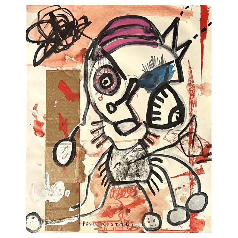 "Looking In Silence" is an original painting, mixed media on paper by Paul Kostabi. The piece comes hand signed by the artist and with a letter of authenticity. Measures approximately 17" x 14".