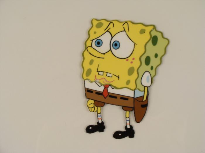 This original animation cel is from the Nickelodeon TV show SpongeBob Squarepants. The story takes place under the deep blue sea in Bikini Bottom, where SpongeBob resides. SpongeBob, who is a yellow, porous sponge, is your typical happy-go-lucky character, as he is always cheerful and enjoys making people laugh. Patrick Star, SpongeBob's neighbor who is a starfish, is your average children's show idiot, as he boasts knowing nothing and is often getting himself into ridiculous situations. Between the homes of these two lies the home of the miserable Squidward, a squid, who is known for being grouchy and playing tricks on SpongeBob and Patrick. Both SpongeBob and Squidward work at the Krusty Krab, a fast food business run by the greedy money-loving Mr. Krabs, a crab, the arch rival of the evil, possibly misunderstood, Plankton. Another neighbor, Sandy Cheeks, an athletic squirrel who normally wears an astronaut's space suit, was introduced in "Tea at the Treedome." She spends most of her time inventing and experimenting. Original Production Animated Cel Overall Size of Cel: 10 1/2" x 12 1/2" Excellent ConditionThis is an original hand-painted cel set-up used in the production of an episode of "SpongeBob SquarePants." Each one-of-a-kind set-up represents a slight change in position of the characters. When individually photographed and projected in rapid succession, the images appear to move.
