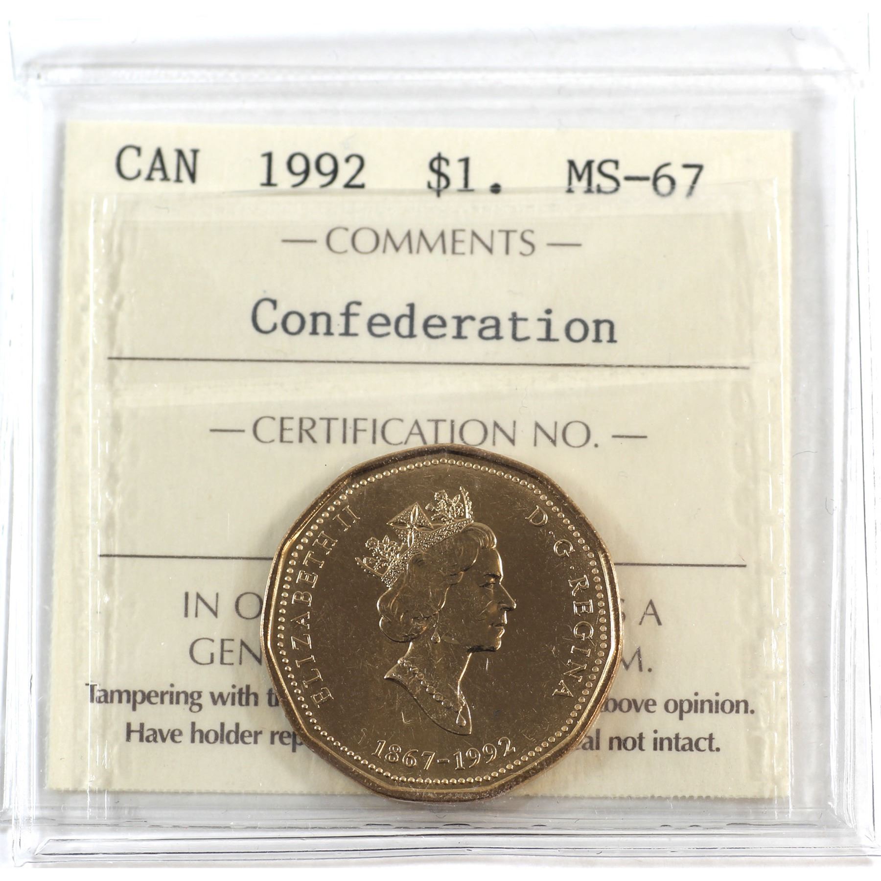 Loon $1 1992 Confederation ICCS Certified MS-67! TOP GRADE!