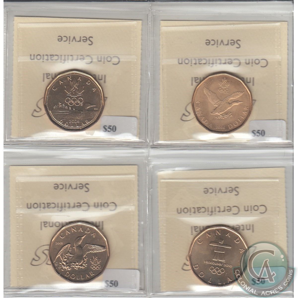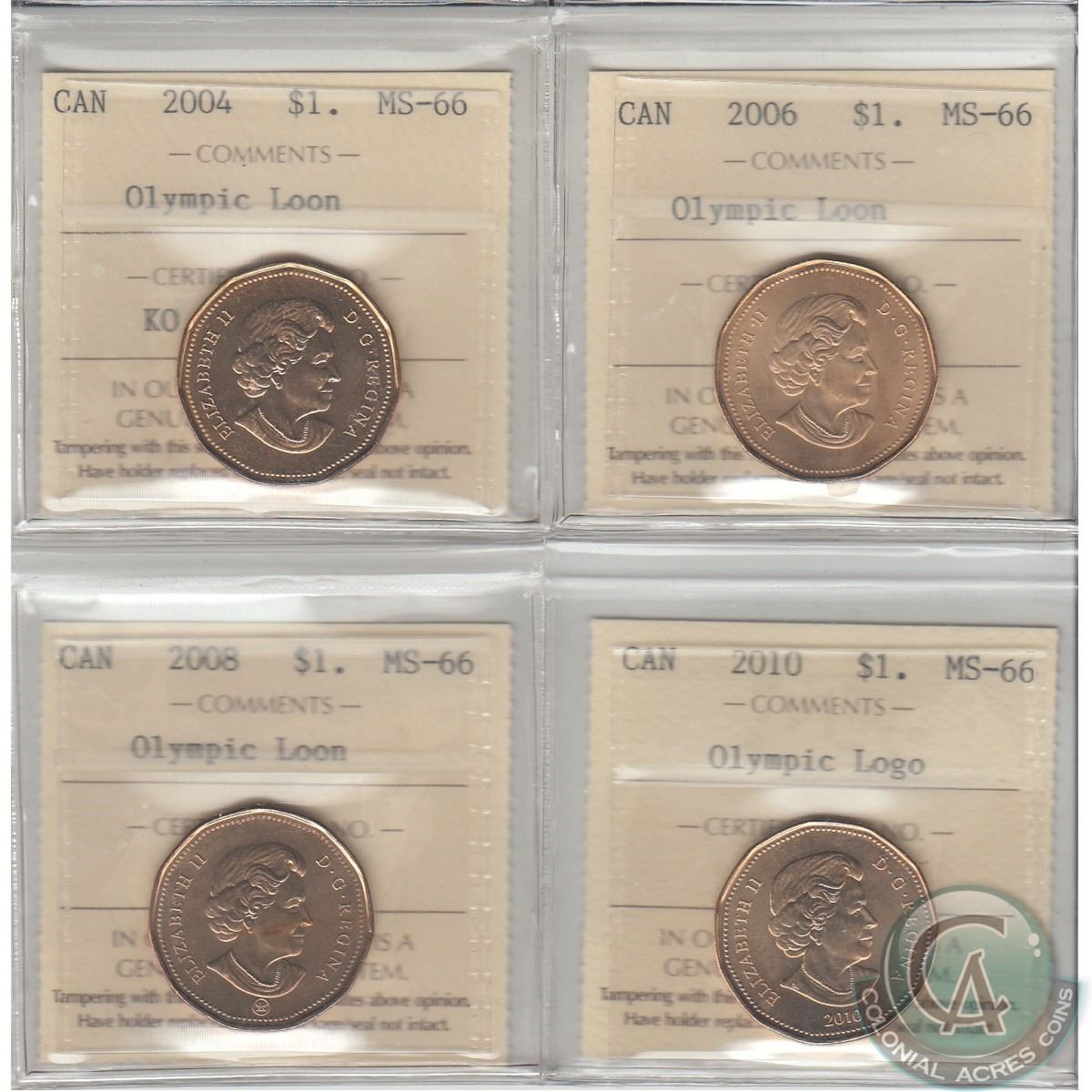 Loon $1 2004, 2006, 2008 & 2010 All Olympic loons Certified By ICCS in MS-66. 2006 & 2010 are both t