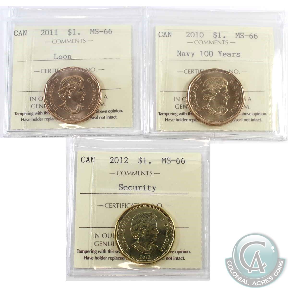 Loon $1 2010 Navy, 2011 & 2012 Security ICCS Certified MS-66. 3pcs