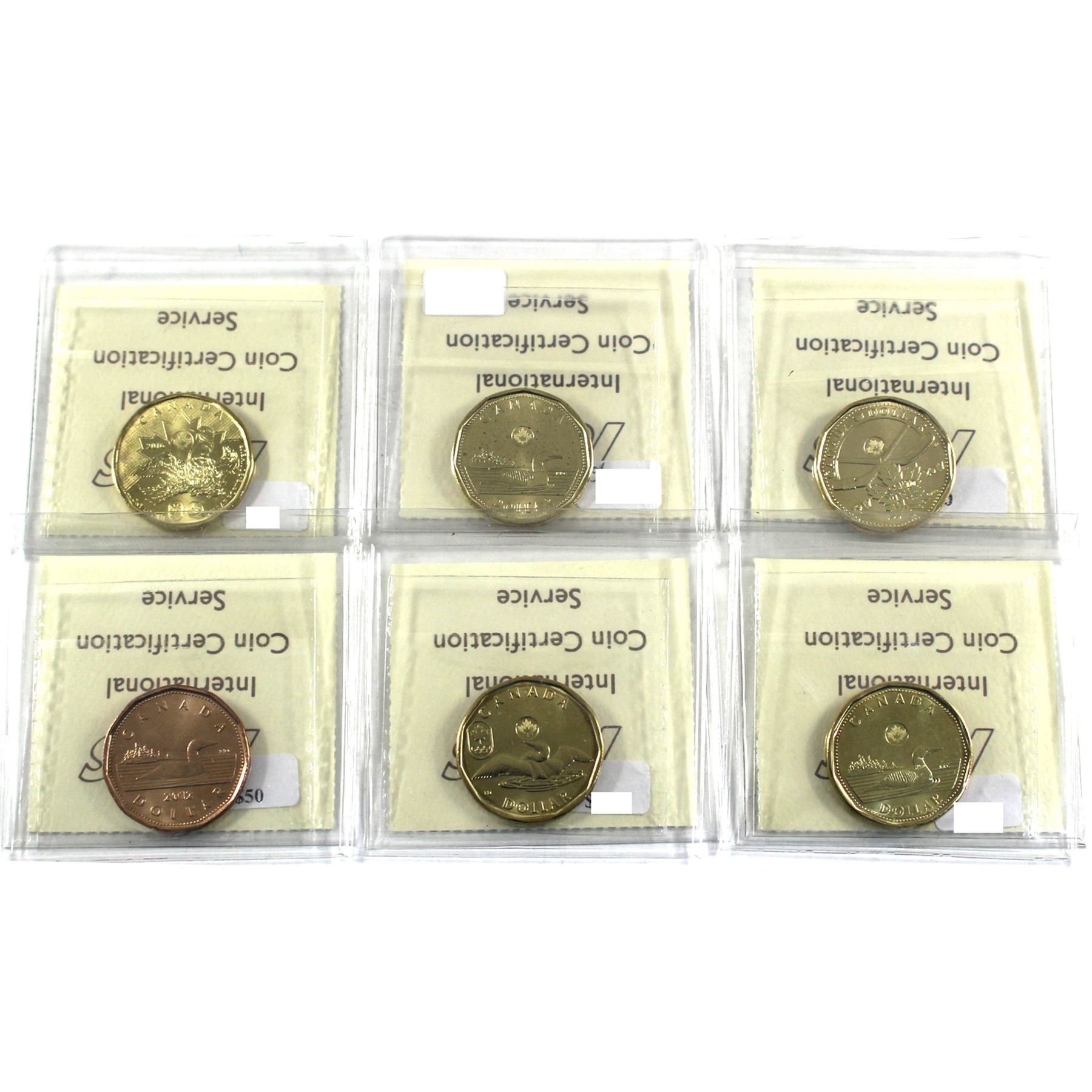 Loon $1 2012 Old Generation,2014 Olympic, 2015, 2016 Olympic & 2007 Toronto Maple leaf ICCS Certified MS-66. 6pcs
