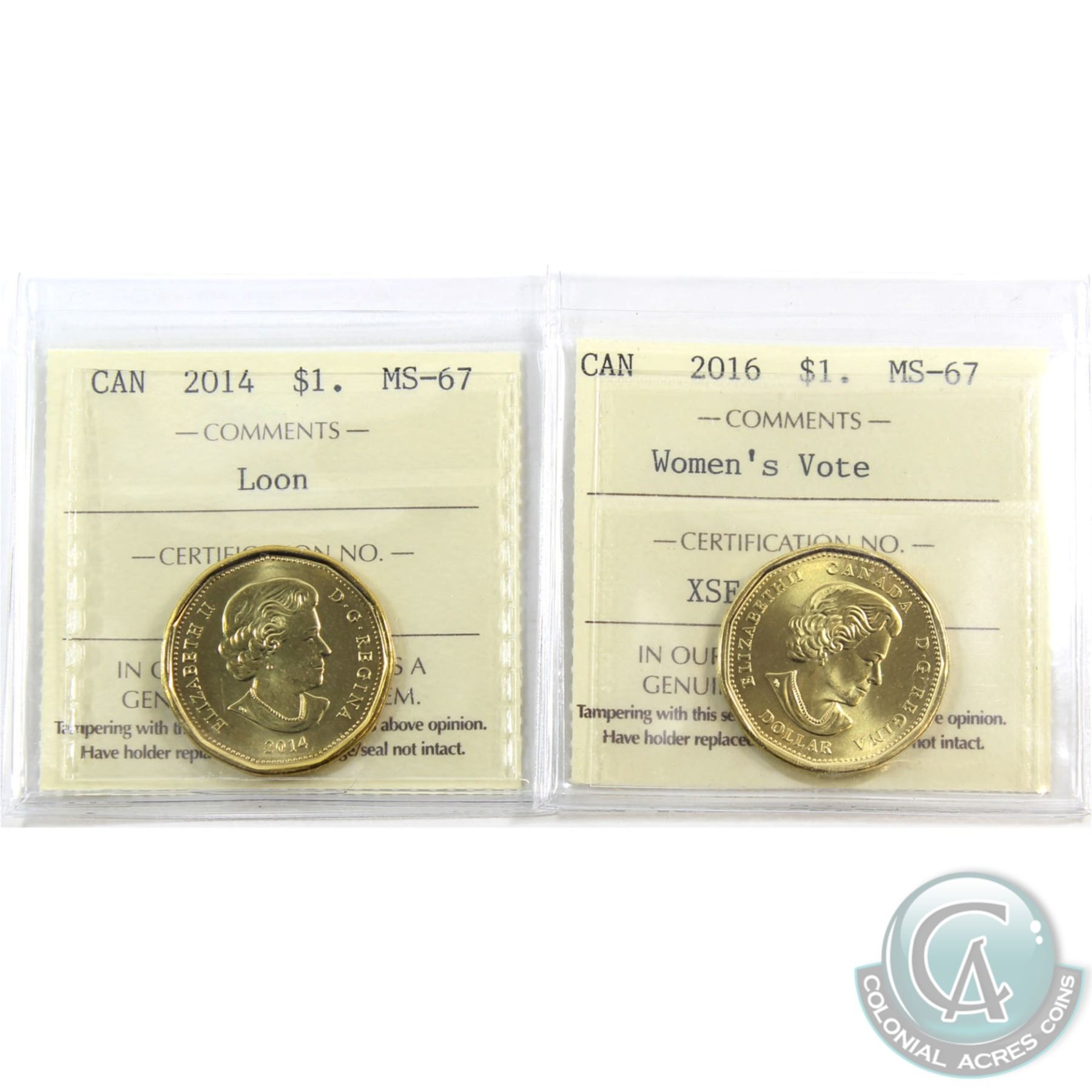 Loon $1 2014 & 2016 Women's Vote ICCS Certified MS-67. 2pcs