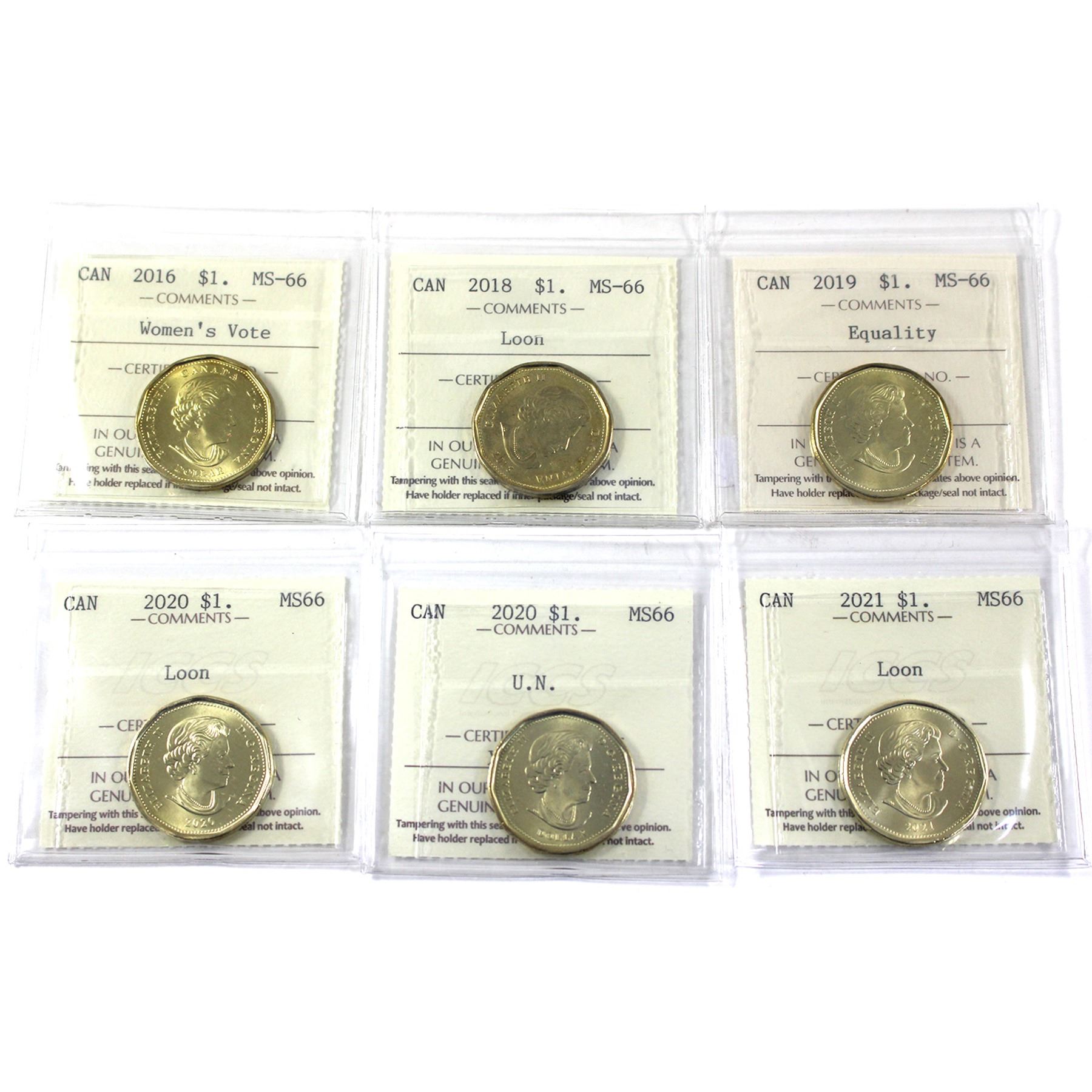 Loon $1 2016 Women's Vote, 2018, 2019 Equality, 2020, 2020 UN & 2021 ICCS MS66. 6pcs